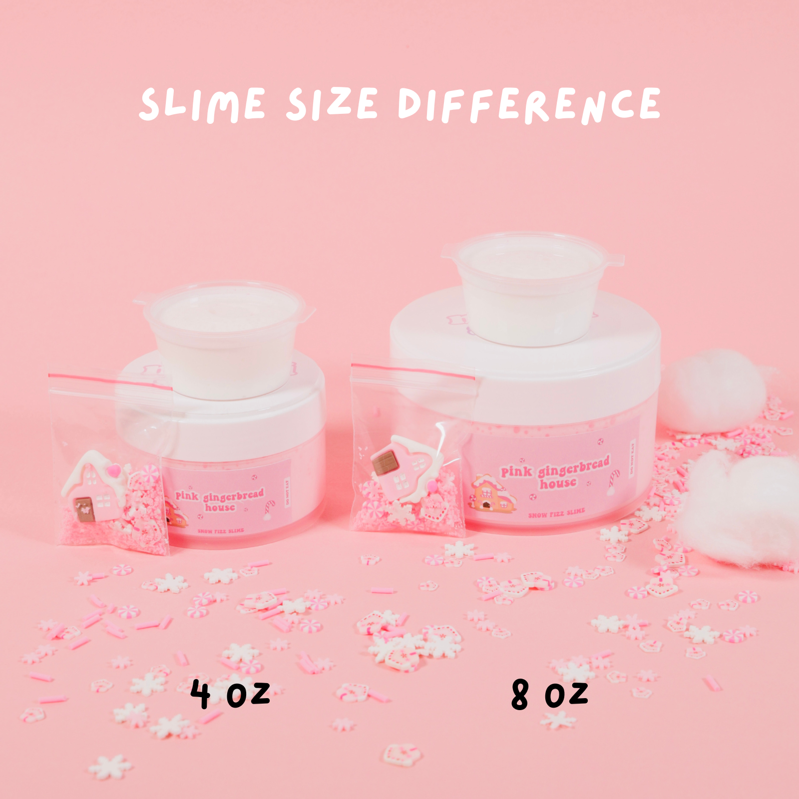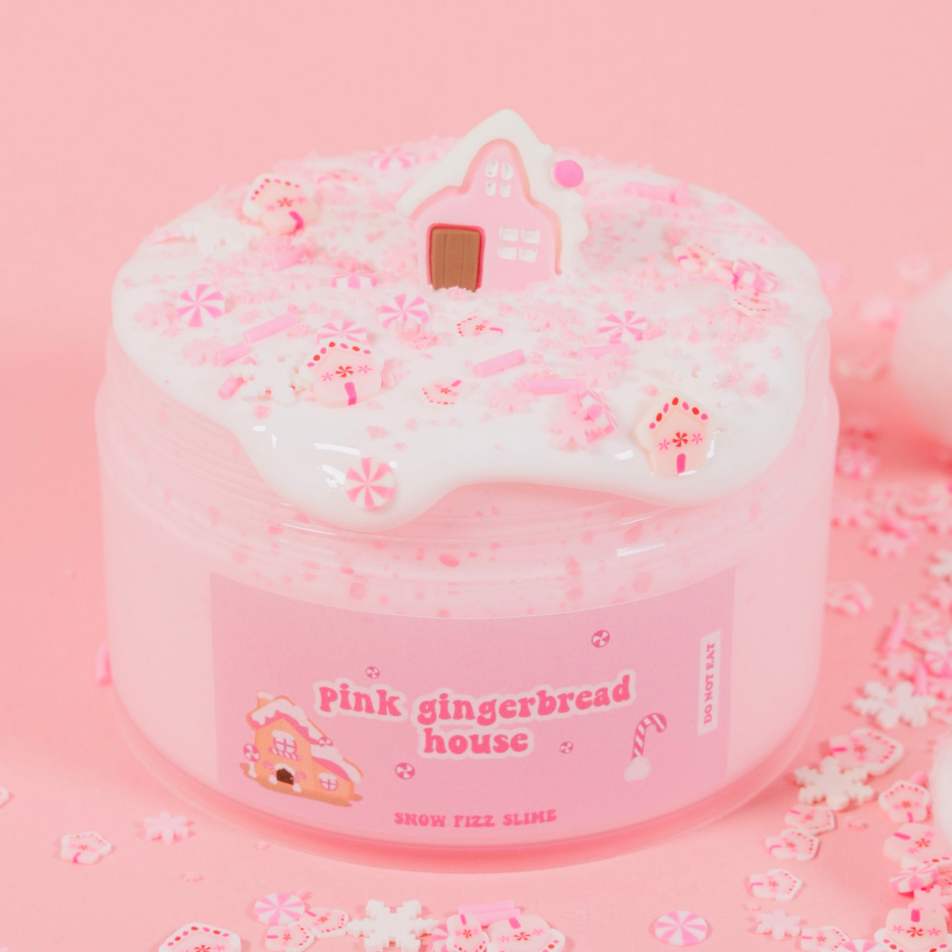 This snow fizz slime smells like freshly baked gingerbread mixed with sugary candy, a cozy Christmas bakery in your hands 🍭🎁 With a soft white topping, sparkly sprinkles, and adorable pink gingerbread house charms, it’s the ultimate festive treat for your senses 🎄💓