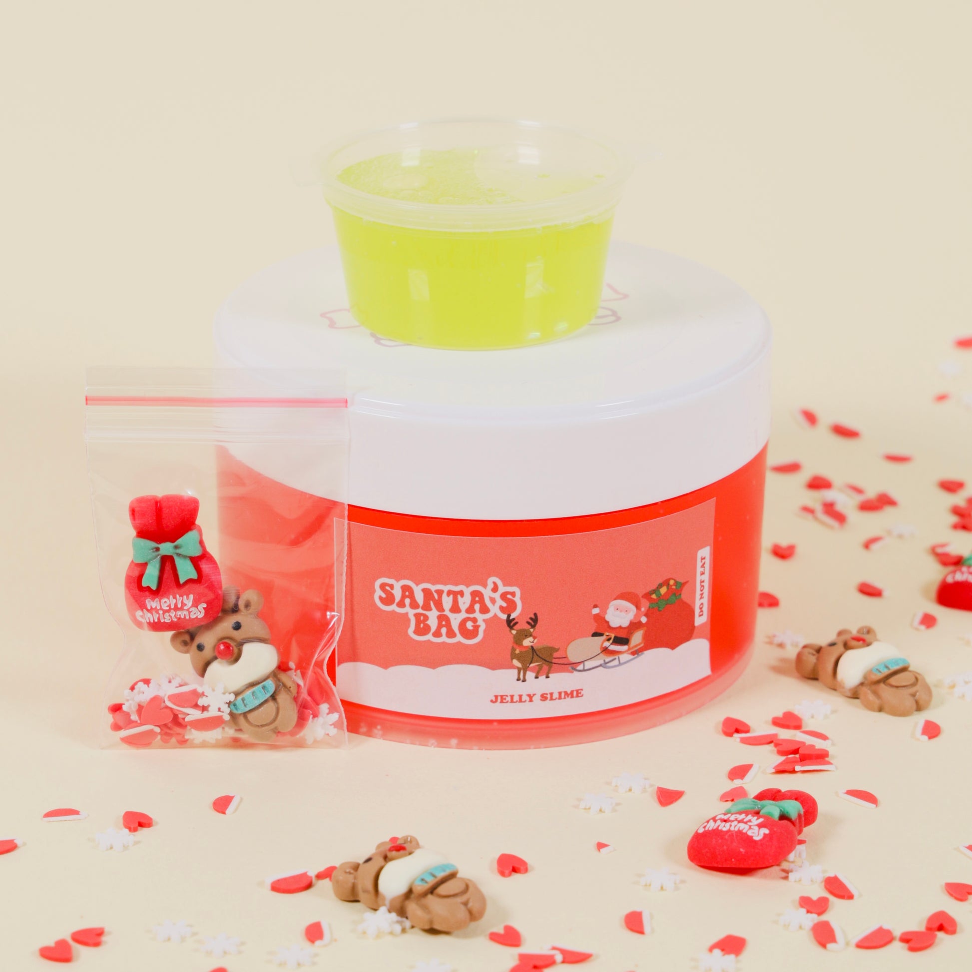 Unwrap the magic of Christmas with Santa’s Bag, the jelly slime that’s bursting with festive surprises! 🎁💚